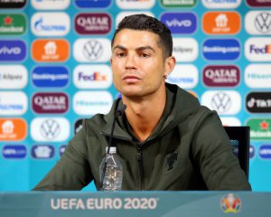 Во время пресс-конференции Роналду отодвинул от себя бутылки с Coca-Cola. Он поднял бутылку с обычной водой, как бы продемонстрировав, что нужно пить.