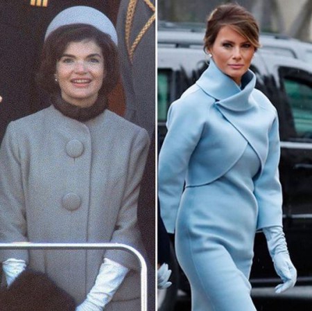 Жена новоизбранного президента США надела комплект из платья с юбкой-карандашом и укороченного кашемирового пиджака со стоячим воротником. Наряд дополнили высокие перчатки и туфли в цвет комплекта, передает "Интерфакс-Украина".