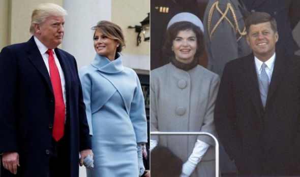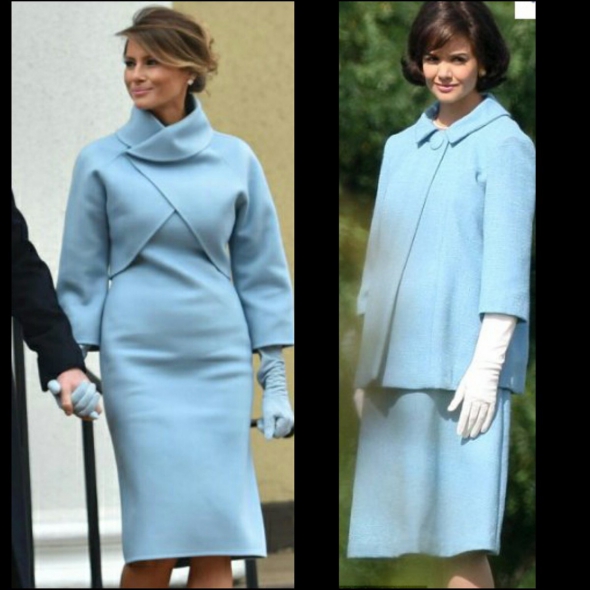 Ее голубое закрытое платье напомнили наряды другой первой леди - Жаклин Кеннеди.