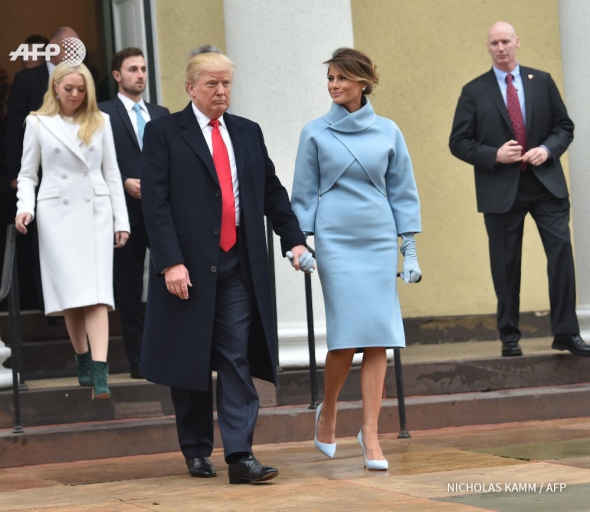 Мелания Трамп прибыла на церемонию инаугурации 45-го президента США в небесно-голубом костюме от Ральфа Лорена.