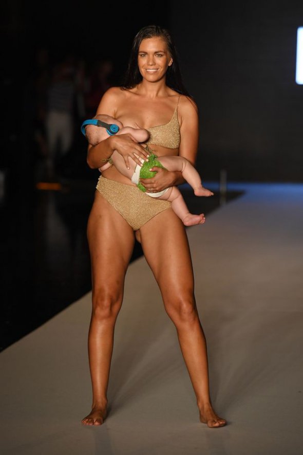 Американская модель Мара Мартин вышла на подиум, кормя грудью свою 5-месячную дочь.