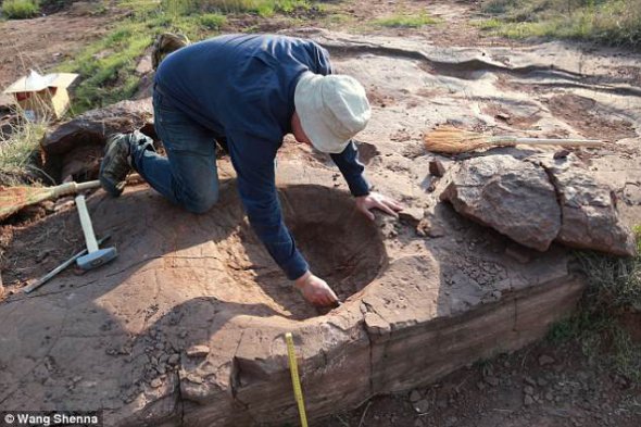 Памятка образовалась около 1,2 миллиона лет назад в районе современного китайского города Ли Чжуан, округ Танчен. Впервые ее открыл "охотник за динозаврами" Тан Юнган в феврале 2015 года, сообщает Daily Mail.