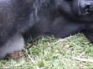 160 - килограммовый Бобо, 24 года, осторожно держит в руках животное, размером со свой палец. Бобо играл с галаго больше двух часов, рассматривал его. Затем осторожно посадил животное обратно на дерево, пишет Daily Mаil.