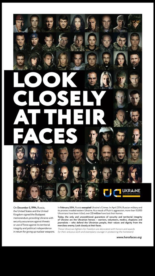 Плакат изображает портреты 63-х украинских мужчин и женщин, проявивших отвагу в защите Родины.