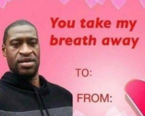Один из сотрудников полиции Лос-Анджелеса создал и разослал коллегам валентинку с изображением Джорджа Флойда, чья смерть спровоцировала протесты в США, подписав ее "У меня от тебя перехватывает дыхание".