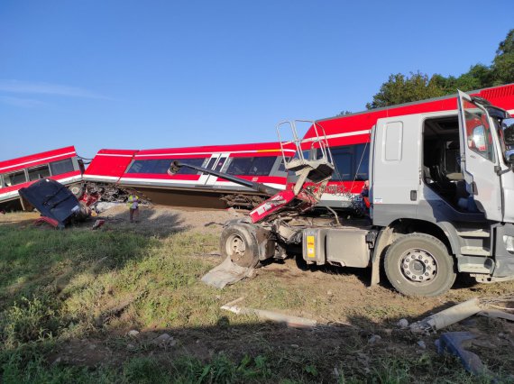 В Польше возле города Щецин в грузовик на железнодорожном переезде влетел пассажирский поезд.