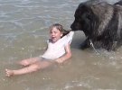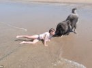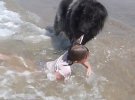 Когда девочку с головой накрыла волна, пес почувствовал опасность. Схватил ее за футболку и потянул к берегу.