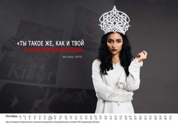 Пользователи интернета по-своему увидели календарь. В нем сирийки обвиняют россиян в преступлениях против гражданского населения их страны.
