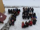 Дети встали на колени, чтобы изобразить цифру "75", пишет glavcom.