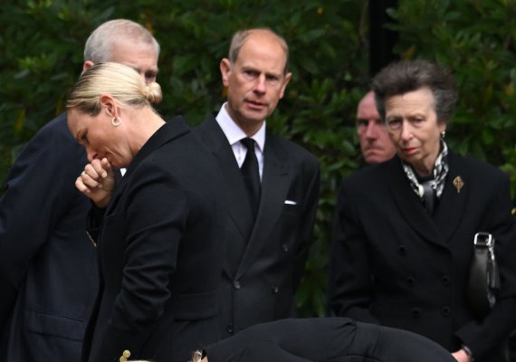 Принц Эндрю – средний сын Елизаветы. Его дочь Евгения на фото держит в руках букет цветов в желтом и белом. Другая внучка покойной королевы – Зара – не сдерживает слез.