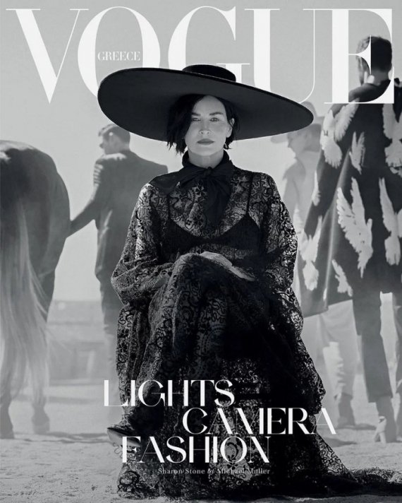 Черный обруч-бант бренда Ruslan Baginskiy стал эффектным шейным украшением на фото голливудской актрисы Шэрон Стоун для обложки греческого Vogue. Она стала главной героиней фэшн-стори ноябрьского номера издания. На этом снимке 62-летняя актриса позирует также в кружевном платье и шляпе ручной работы от дизайнера Сары Сокол.