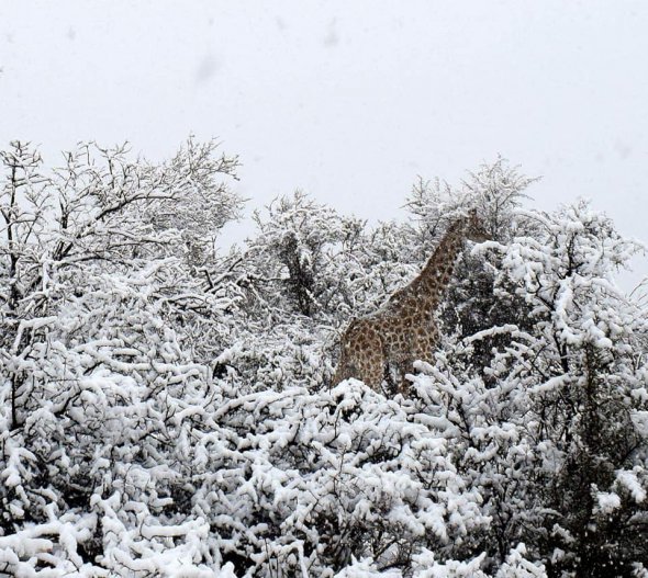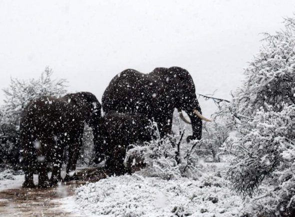 "Снег начался днем в субботу. Температура воздуха 16 градусов тепла резко снизилась до 0 градусов. За несколько часов высыпало до 7 сантиметров снега. Но хуже всего животным. Такую аномальную погоду они переносят очень тяжело. Мы выезжали в пустыню. Здоровенные слоны трясутся от холода. Жирафы перестали есть лиистя, потому что оно холодное. При этом очень кричат", - говорит ветврач Самуэль Старленд.