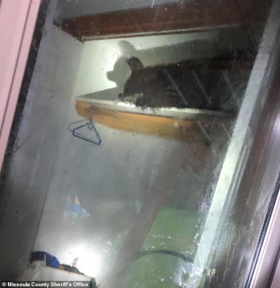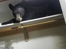 Когда правоохранители приехали и открыли комнату, животное уже залезло на полку и уснуло. Двери открыли в надежде, что медведь проснется и побежит прочь из дома.