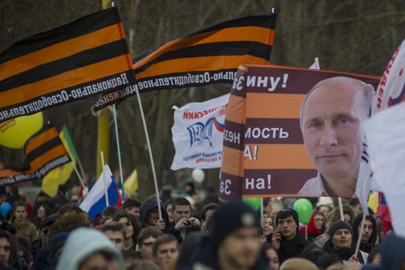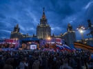 В Москве возле здания МГУ состоялся фестиваль "Весна", посвященный третьей годовщине аннексии Крыма. Участие в нем, кроме представителей патриотических движений и школьников, принимала профессиональная массовка.