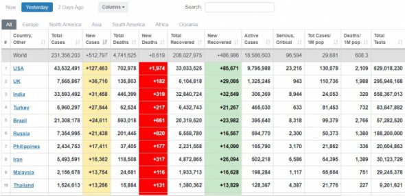 За сутки в мире зафиксировали более 8,6 тыс. летальных случаев болезни. По смертности от Covid-19 Украина на 14-м месте в мире и на третьем в Европе.