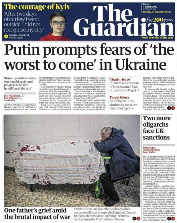 Десятилетний опыт борьбы с российской пропагандой, наконец, окупается - украинцы создают собственные контраргументы в соцсетях. Публикуют видео, в которых призывают российских солдат идти домой к матерям. Они берут интервью у пленных российских призывников-подростков и размещают ролики в интернете. Дорожные знаки, ведущие в Киев, были изменены, чтобы сказать российской армии "Иди на..й!". Даже если это плохо кончится, даже если прольется много крови, каждый украинец, переживший это, всегда будет помнить, каково сопротивляться. Это будет иметь значение на десятилетия.