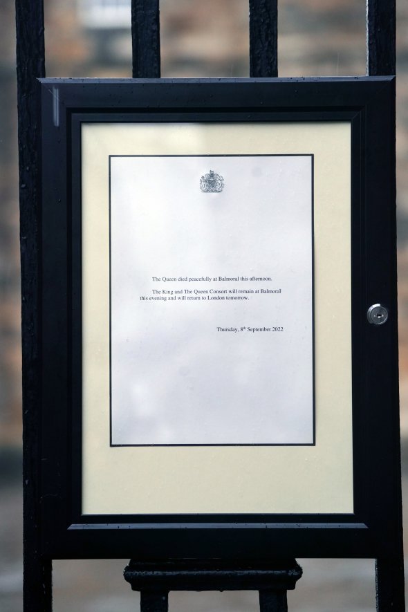 На ворота Букингемского дворца вывесили табличку, что королева умерла. Елизавета II была на троне дольше всех британских монархов – 70 лет.