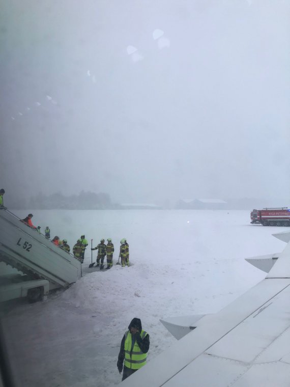 В международном аэропорту "Рига" из-за плохой видимости с рулежной дорожки съехал самолет Airbus A220-300, возвращавшийся из Стокгольма.
