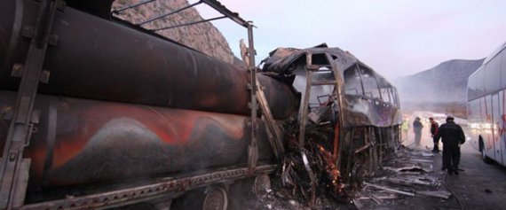 Автобус, который ехал из Стамбула, врезался в грузовик, припаркованный на обочине. Пассажирский транспорт вспыхнул и выгорел дотла, сообщает Washington Post.