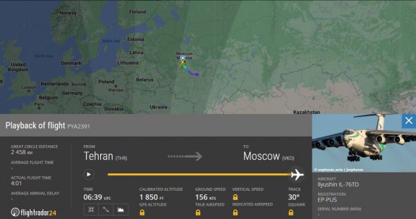 20 октября в московский аэропорт Внуково из Тегерана прибыл грузовой Ил-76 (EP-PUS) ВВС Ирана, а 21 октября – Boeing 747 (EP-SIH) авиакомпании Saha Airlines. Такие данные глобального ресурса FlightRadar, отслеживающего полеты по всему миру.