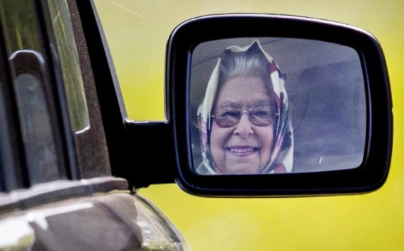 В интернете появилась забавная фотография королевы Великобритании. Елизавету II сфотографировали в зеркале ее любимого авто – темно-зеленого Range Rover.
