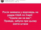 Были высмеяны сообщение кремлевских пропагандистов о том, что ПВО Сирии, вооруженные древними зенитно-ракетными комплексами времен СССР, смогли уничтожить треть ракет западных союзников.