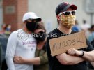 Люди, которые вышли на акцию протеста, держали в руках плакаты с призывами: "Справедливость для Джорджа", "Хватит убивать темнокожих".