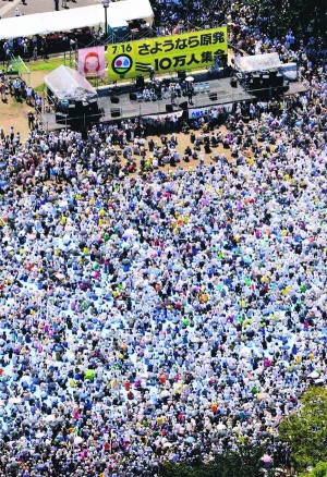 В понедельник более 100 тыс. японцев вышли в столице Токио на демонстрацию против того, что власть решила возобновить работу атомных электростанций. Митингующие перекрыли одну из центральных улиц. В первом ряду шли нобелевский лауреат по литературе Кендзабуро Ое, композитор Рюичи Сакамото и художник Йошимото Нара.