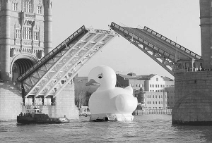 По реке Темза в британской столице Лондон плавает 15-метровая желтая резиновая утка. 11 декабря ее запустили на воду представители игорного бизнеса. Говорят, чтобы развлекала людей и вызывала у них улыбки.