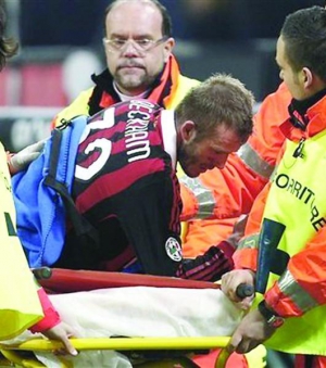 Полузащитник итальянского "Милана" англичанин Дэвид Бекхем, 34 года, разорвал ахилл в воскресном поединке против "Кьево". Игрок оступился на ровном месте за 2 мин. до окончания матча. В понедельник футболиста прооперировал врач Сакаро Орава в одной из финских клиник. Скорее всего, Дэвид пропустит финальную часть Кубка мира, который стартует 11 июня. Точных сроков возобновления после травмы ахилла не существует, но вряд ли игрок выздоровеет раньше чем через пять-ше сть месяцев.