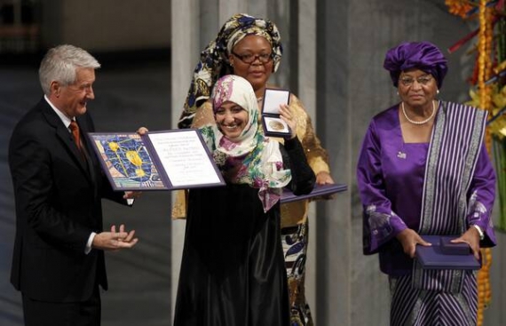 Она стала лауреатом Нобелевской премии мира. Награду разделила с активисткой либерийского женского движения за мир "Вумен оф Либериа Месс Экшн фо Пис" Леймах Гбови, 39 лет, и йеменской правозащитницей, журналисткой Таваккул Карман, 32 года. Последняя стала первой арабкой, которую удостоили Премии мира. Награду присвоили за "ненасильственную борьбу за безопасность женщин и за их право на полноценное участие в миротворческой работе".