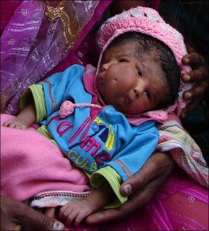 Девочка с двумя лицами родилась в индийском поселке Саини в северном штате Уттар-Прадеш. Маленькую Лали Кумар считают воплощением слоноголового божества Ганеши. Десятки людей ежедневно приходят поклониться ребенку и попросить ее благословения.