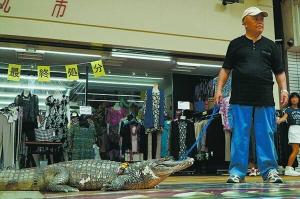 Крокодил живет в квартире вместе с хозяевами. Ползает всюду, где хочет. Каждый день его выводят на прогулку на поводке.