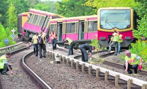 Шесть человек получили ранения, когда во вторник в полдень на околице немецкой столицы Берлина сошел с рельсов поезд пригородной электрички "С-Бан". На момент аварии в вагонах было около 150 людей. На место сразу прибыло втрое больше спасателей и медиков, которые думали, что не обошлось без жертв.