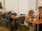"Эта еще ниче. В среду, кажись, бабы за косы тягали одна однаго. Те не уступило, и те не уступило. Целый концерт - як не задушат, так затопчат. Березенко платит гроши, шоб его выбрали. Суседка рассказывала, что на болоте у нас записували жилающих продать голос за 400 рублей. Не продалась, побоялась. Бо одне дали, а другие ешо убьют. Хотя везде порозвешивали плакаты, что дадут 20 тысяч если расскажешь за скупку голосов. С Чарнигава сделали посмиховыща. Лучше б тролейбус купив и написал бы, что от Корбана, или скорую помощь, як Атрошенко (Владислав Атрошенко, нардеп от Блока Петра Порошенко, избирался на 206 округе, победил с более 50% голосов избирателей – Gazeta.ua). А он такой дурдом устроил – позбирав усех калик, кормить их. Дурня какая. Рассказывают, что и секунд-хенд викупив и шмотки роздавал", - рассказывает Анна Васильевна. Сидит на скамейке в тени неподалеку палатки, заняла очередь и ждет пока толпа немного рассеется. Держит палку.