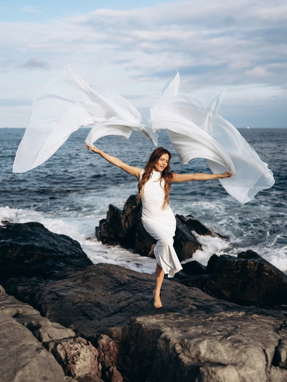 Наталка Денисенко с белой тканью в руках устроила чувственную съемку у моря Фото: instagram.com/natalka_denisenko