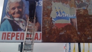 В Тернополе появился билборд с бабушкой и котом, аналогичный тому, который недавно был в Днепродзержинске Днепропетровской области.