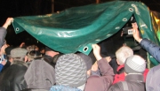 "Бий їх, падлюк, вони зрадили Україну. А якщо не зрадник, то хай завтра пише рапорт та приєднується до нас", - кричить хлопець у чорній масці та розхитує "Газель", в якій їдуть солдати.