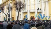 У Вінницькій ОДА розмістилися майданівці. Хлопці групуються у сотні і збираються цілодобово охороняти адміністративну будівлю.