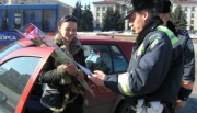 Вінницькі державтоінспектори привітали жінок-водіїв з 8 Березня. Акцію влаштували у центрі міста. Жінки за кермом на знак інспектора ДАІ "зупинитись" реагували з острахом.