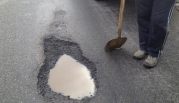 На Закарпатті у дорожні вибоїни ремонтники "втоптують" глину