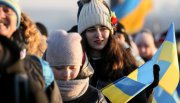 У Києві на мосту Патона про ... акція з'єднанням двох полотнищ у єдиний прапор.
