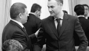 — Разрешите его поздравить, — каже Азаров, торкається плеча міністра та вручає ...