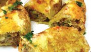 Кілограм очищеної картоплі залишаю на 10 хвилин у ... , щоб не потемніла. Подрібнюю у блендері або на дрібній ... начинки й загортаю рулетиком. Викладаю у змащену маслом форму для ...